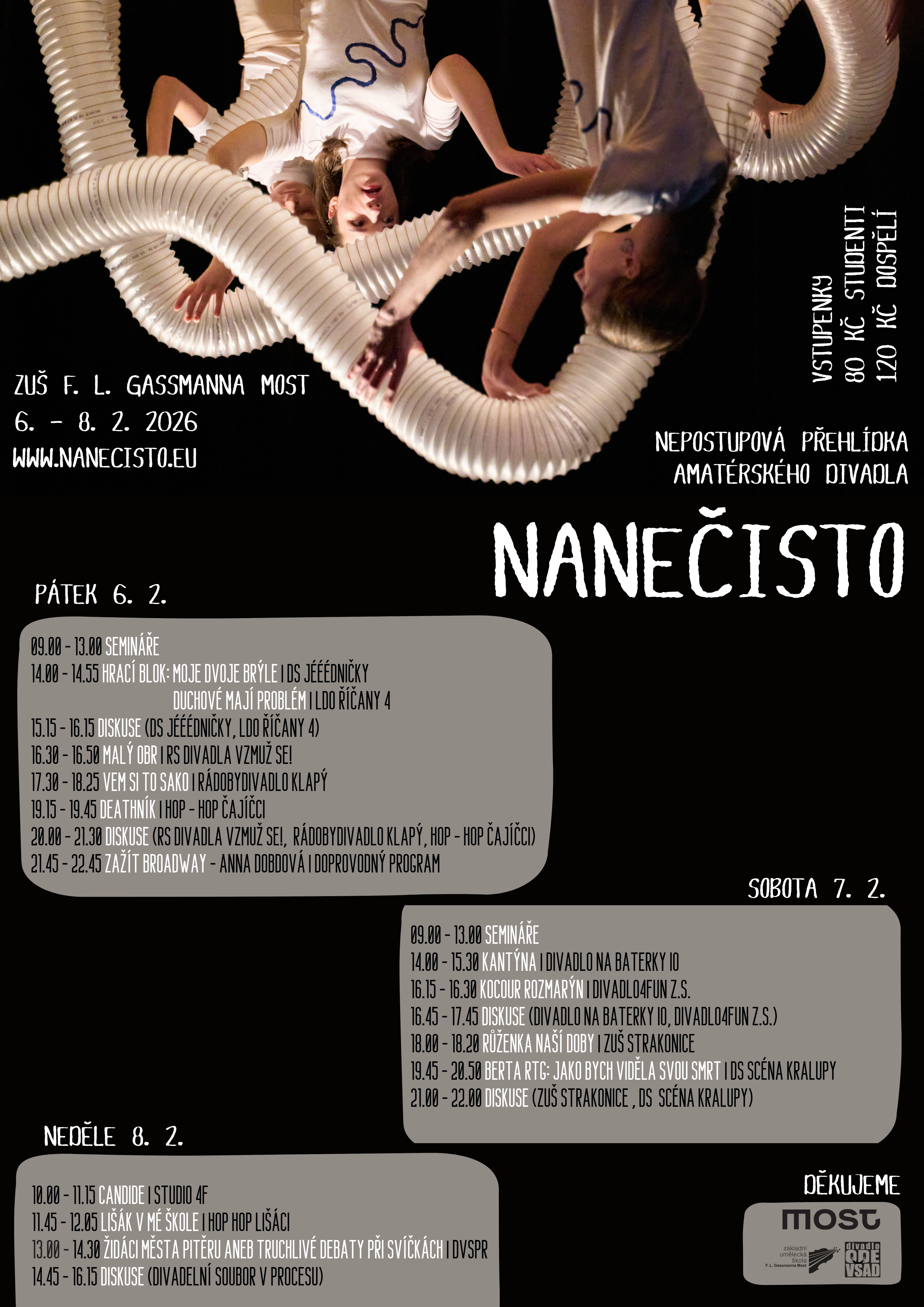 Děkujeme za podporu Statutárnímu městu Most, Ministerstvu kultury, Minipivovaru Most, ZUŠ F. L. Gassmanna a také Divadelnímu spolku ODEVŠAD.