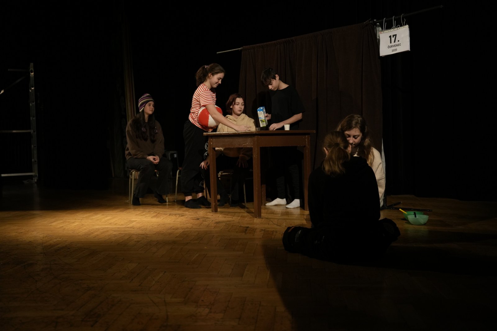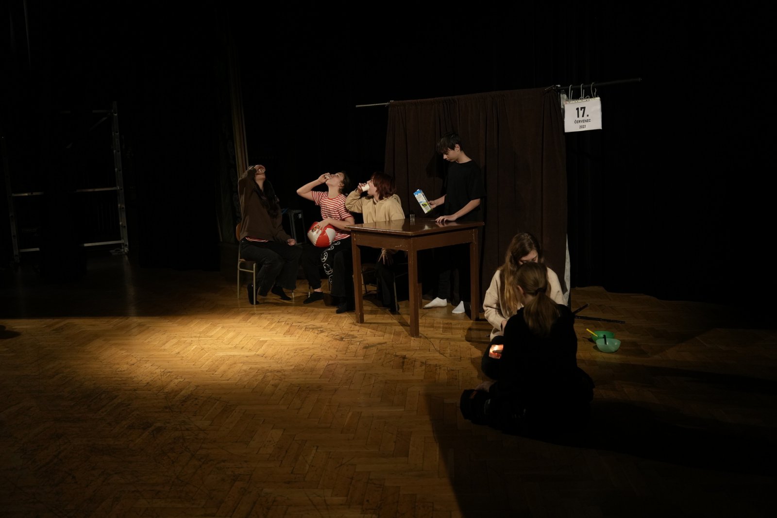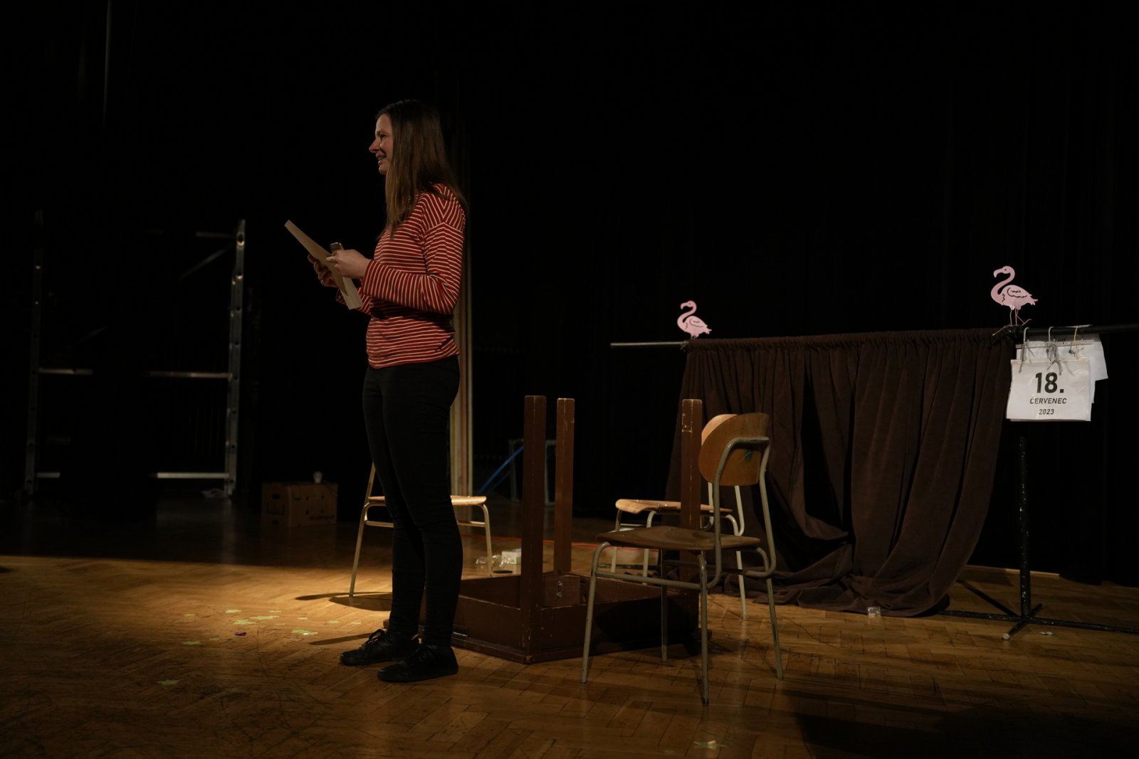 T: Poslední věc – tři asociace ke slovu divadlo! D: …………………….. (pozn. red.: Už bylo 23:30, Domča se nevyjádřila, zkusíme to znovu za rok. Možná potřebuje trošku inspirace – hoďte jí pár povzbudivých slov, nápadů, asociací do schránky v předsálí. Díky!)