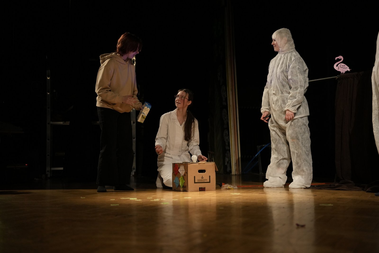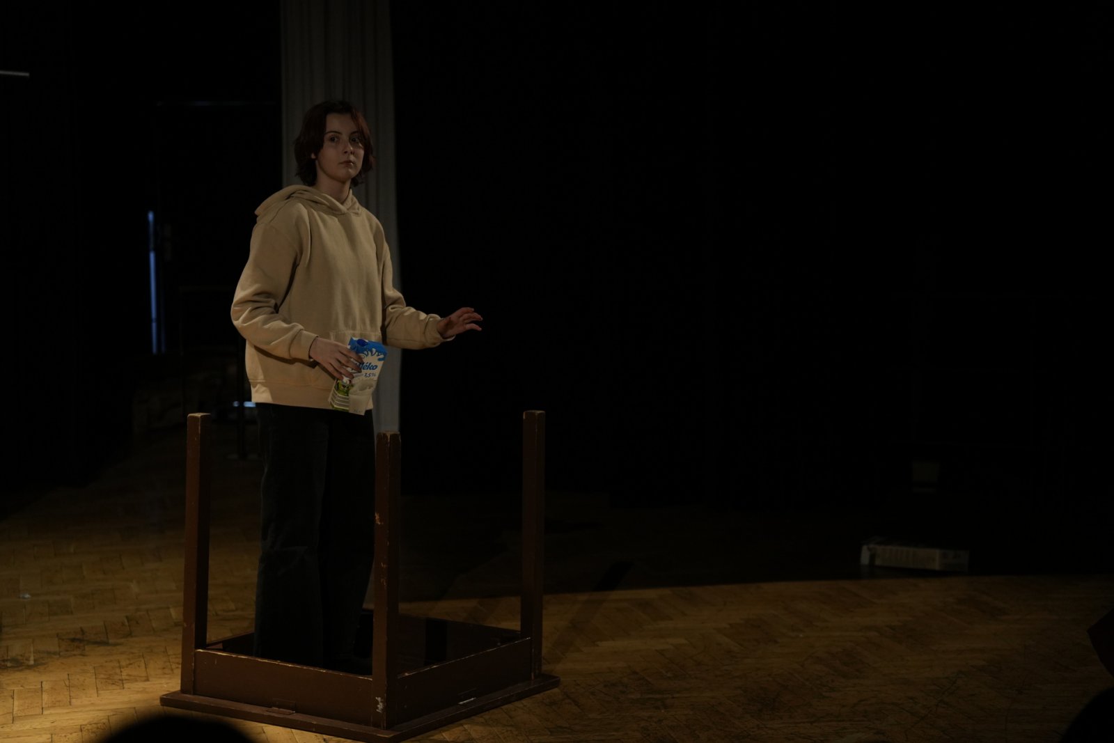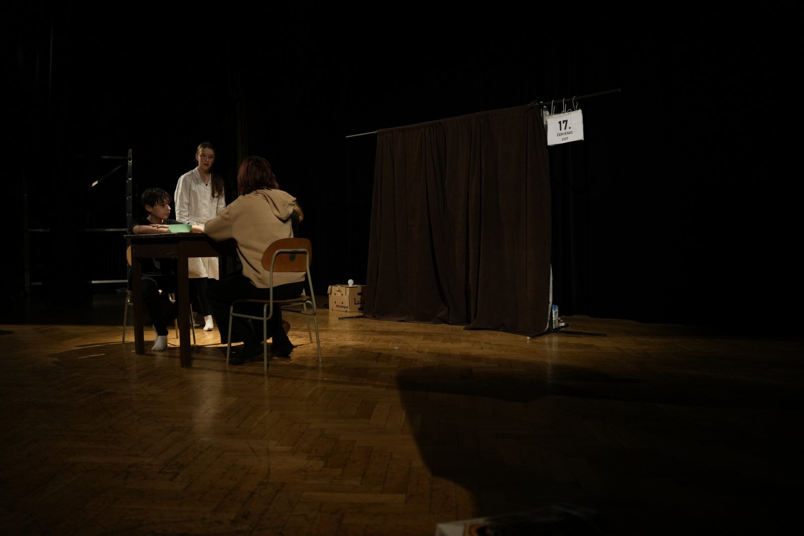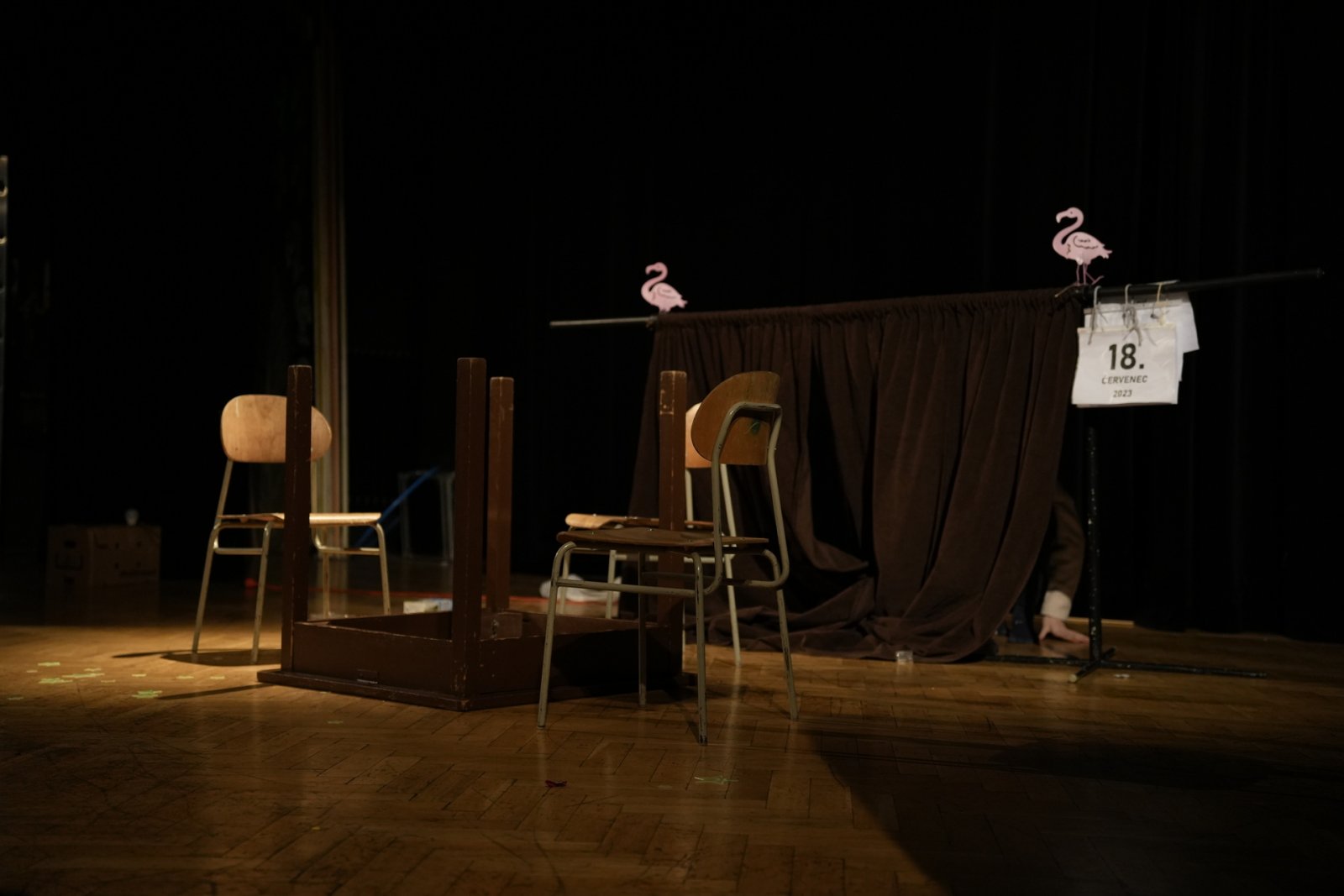 T: Poslední věc – tři asociace ke slovu divadlo! D: …………………….. (pozn. red.: Už bylo 23:30, Domča se nevyjádřila, zkusíme to znovu za rok. Možná potřebuje trošku inspirace – hoďte jí pár povzbudivých slov, nápadů, asociací do schránky v předsálí. Díky!)
